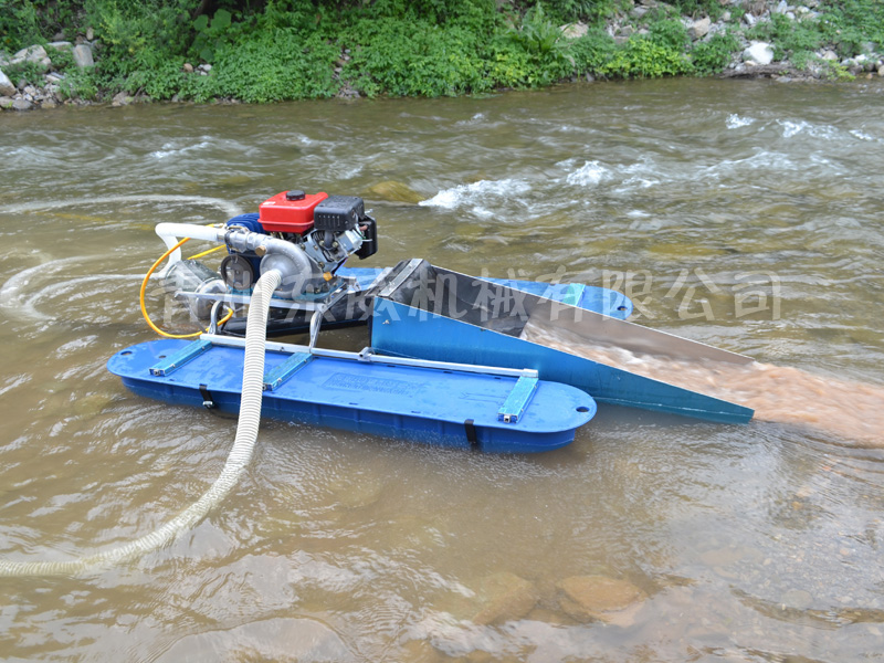 虹吸式淘金船是由机器、高压水泵、浮体、射流嘴、管路、选矿溜槽等构成,具有体积小、轻量化、便于拆装运输等特点,是沙金采选行业内投资少、见效快的新选择;可选装空压机系统,潜入水下进行探矿、选矿操作。