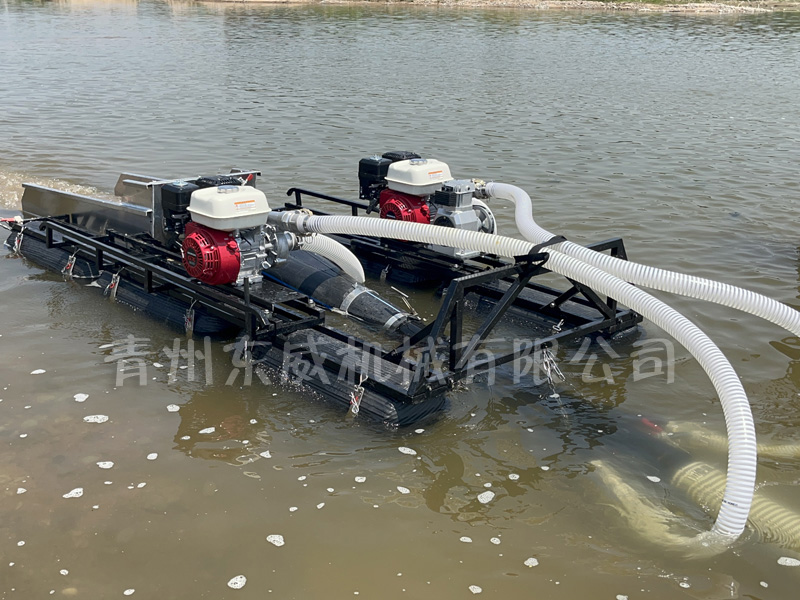 该设备抽沙系统采用新型结构,原料抽取过程中物料不流经泵组,不用考虑泵和叶轮的磨损;沙金重选装置为我公司专门研发的橡胶选金垫,沙金提取效率高,可对毛细金、片状金进行回收;适用于中小型矿场、河道、小溪淘金、探矿作业;