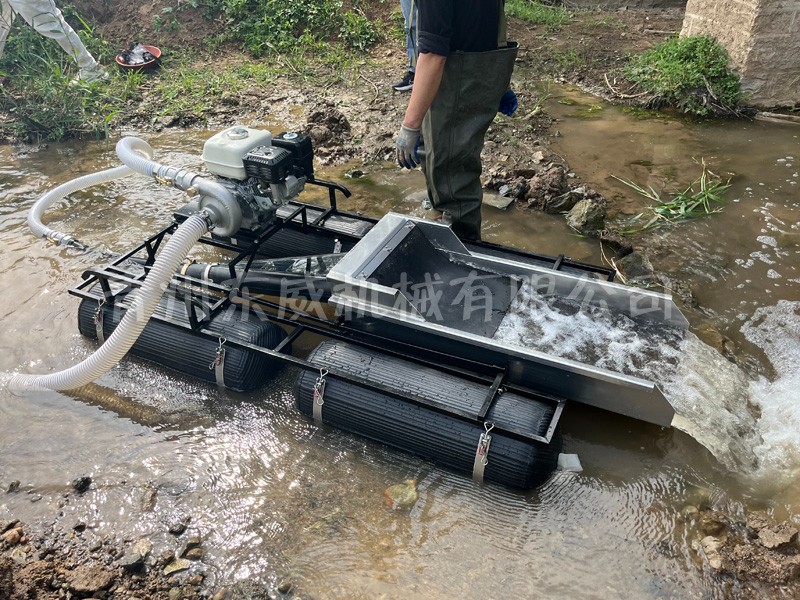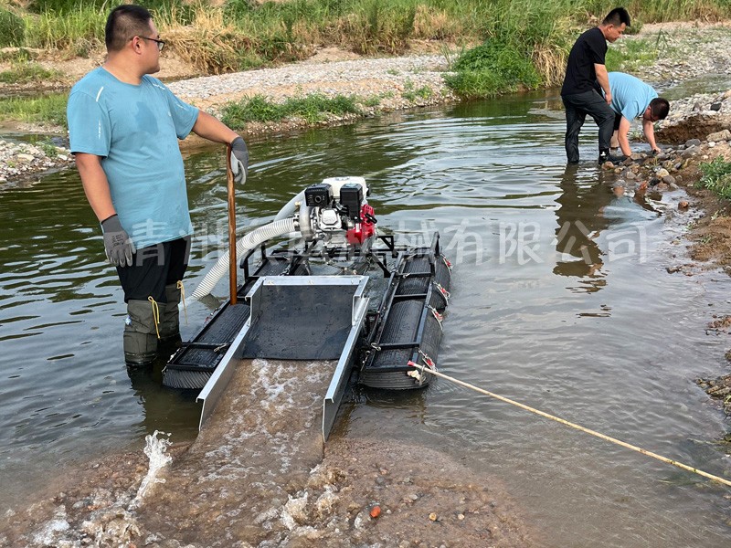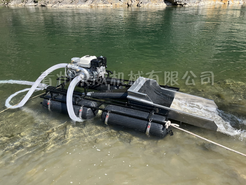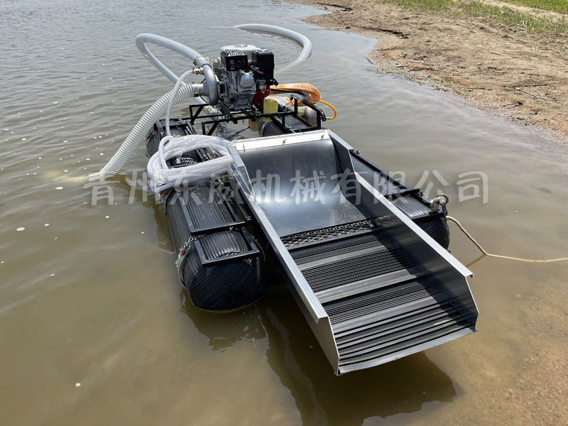 虹吸式淘金船是由机器、高压水泵、浮体、射流嘴、管路、选矿溜槽等构成,具有体积小、轻量化、便于拆装运输等特点,是沙金采选行业内投资少、见效快的新选择;可选装空压机系统,潜入水下进行探矿、选矿操作。