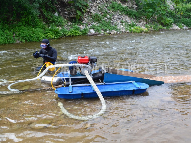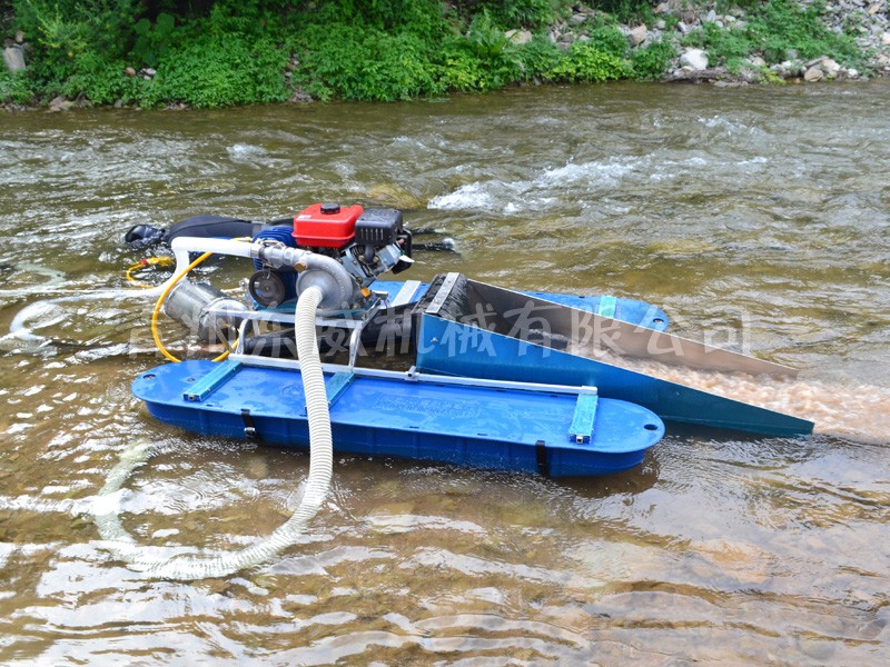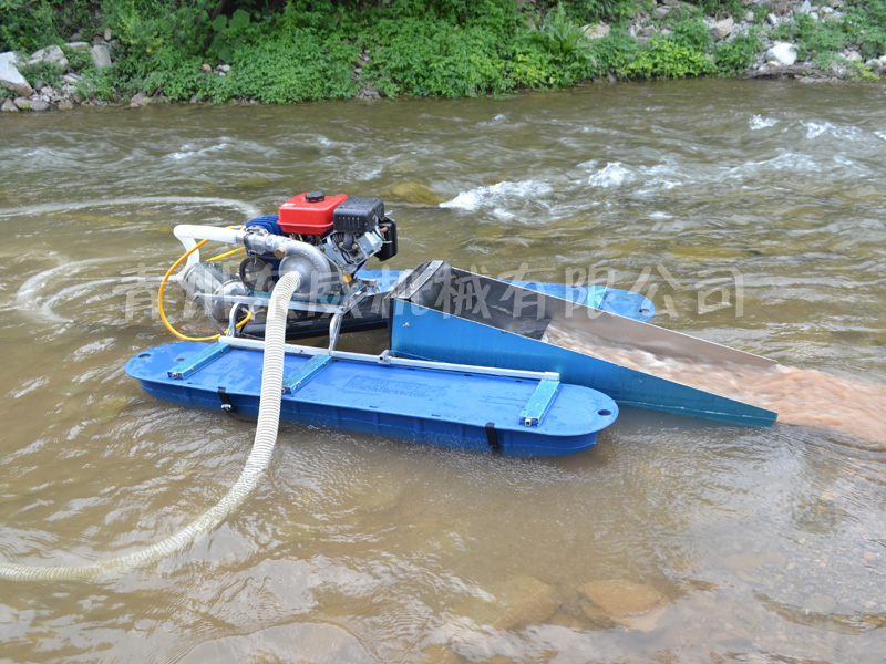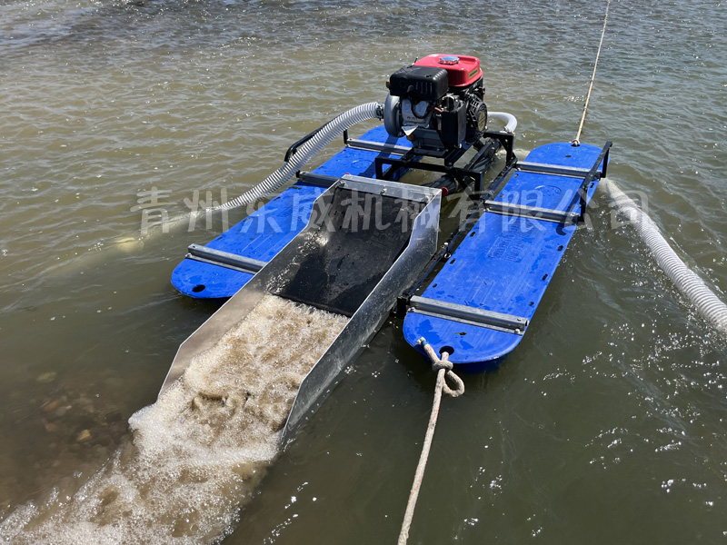 虹吸式淘金船是由机器、高压水泵、浮体、射流嘴、管路、选矿溜槽等构成,具有体积小、轻量化、便于拆装运输等特点,是沙金采选行业内投资少、见效快的新选择;可选装空压机系统,潜入水下进行探矿、选矿操作。