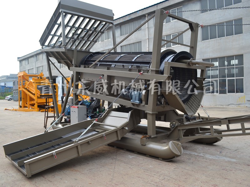 滚筒式淘金机组,具有工作量大、生产成本低、适用范围广的特点,适用于石头较多或含泥较多的工况使用。