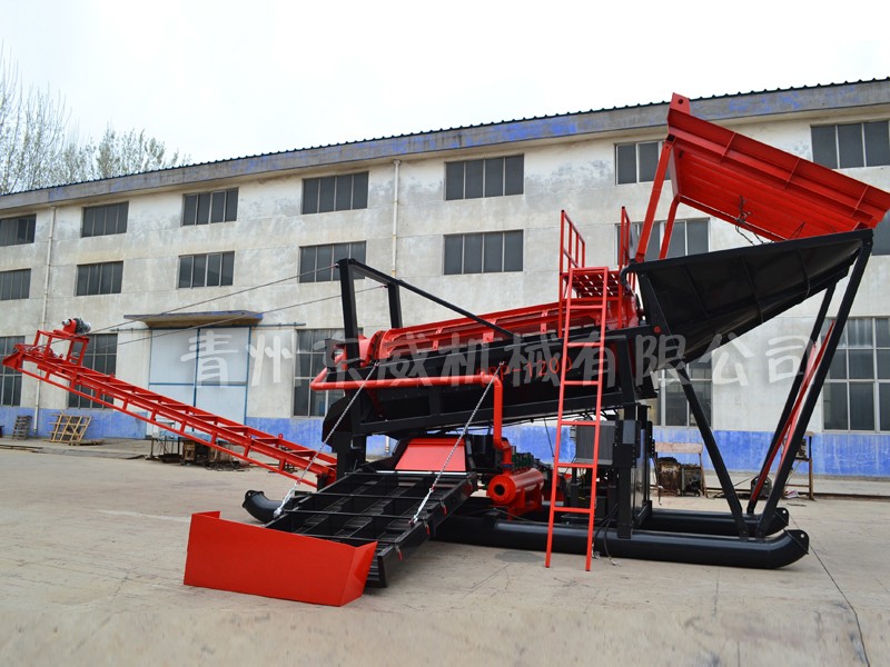 滚筒式淘金机组,具有工作量大、生产成本低、适用范围广的特点,适用于石头较多或含泥较多的工况使用。