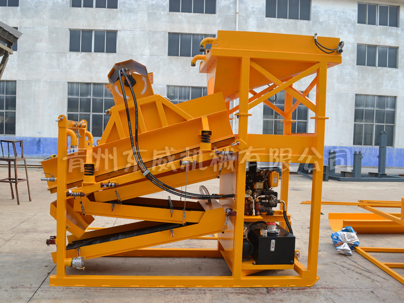 振动式选金机是一个紧凑型、可移动的整体结构。顶部为筛条部分,可以将大块物料隔除,同时物料落入二次筛分机构,充分筛分后,高压力水将沙子冲入溜槽选金。该选金机结构金紧凑、操作简单、低运行成本。明显比市场上其它选金设备有优势,无需丰富的选金经验即可操作。