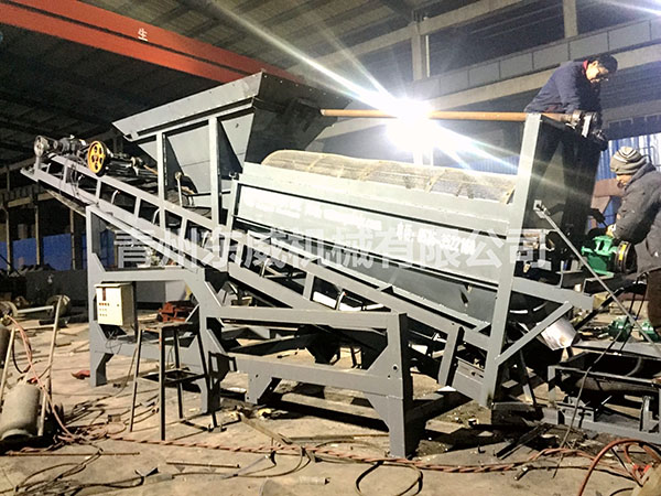 装载机将砂石混合料铲入料仓,物料经料仓流入滚筒筛内进行筛分,筛分后的沙子由输送机输送至料堆,鹅卵石通过滚筒筛溜到筛沙机尾部,一次性完成筛沙作业。