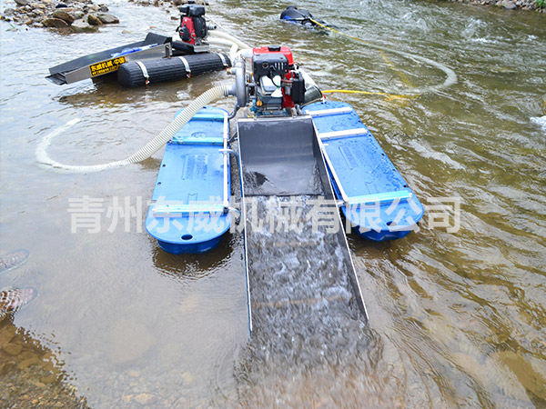 微型淘金船,又叫虹吸式淘金船,体积小重量轻,便于拆装、运输、携带、操作,投资少见益快;